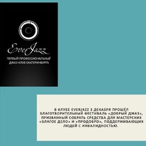 В клубе EverJazz 3 декабря прошёл благотворительный фестиваль «Добрый джаз», призванный собрать средства для мастерских «Благое дело» и «ПроДобро», поддерживающих людей с инвалидностью.
