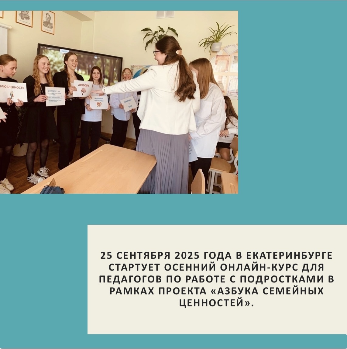 25 сентября 2025 года в Екатеринбурге стартует осенний онлайн-курс для педагогов по работе с подростками в рамках проекта «Азбука семейных ценностей».