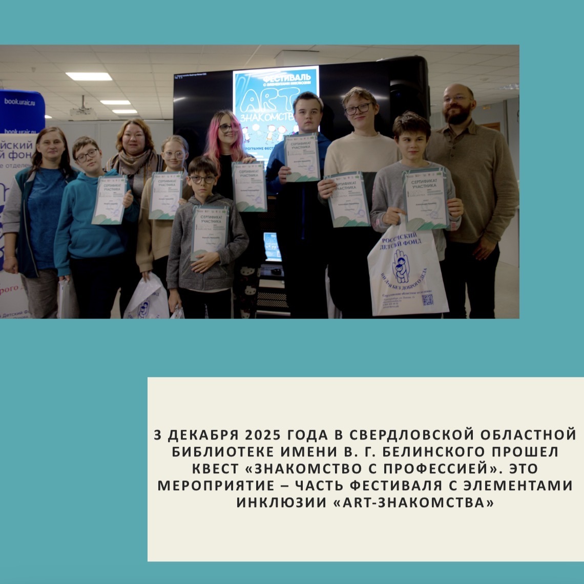 3 декабря 2025 года в Свердловской областной библиотеке имени В. Г. Белинского прошел квест «Знакомство с профессией». Это мероприятие – часть фестиваля с элементами инклюзии «Art-знакомства».