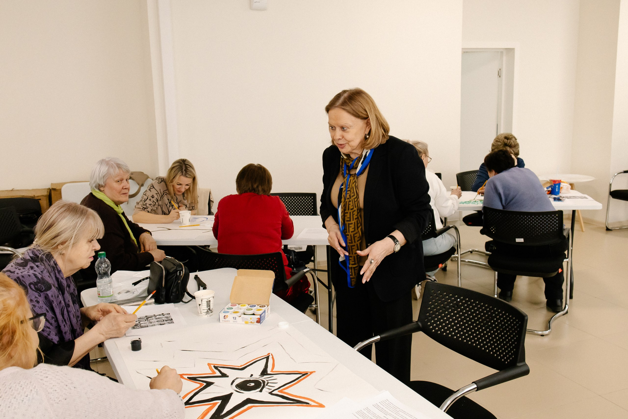 Гости рисовали свои эмоции. Оказалось, что даже в гневе могут быть жизнеутверждающие цвета, а у страха «глаза велики», но с ним можно справиться. А один из рисунков — ёжик, удивившийся спелой землянике под солнцем — напомнил, что даже в трудные времена есть место внезапной радости.