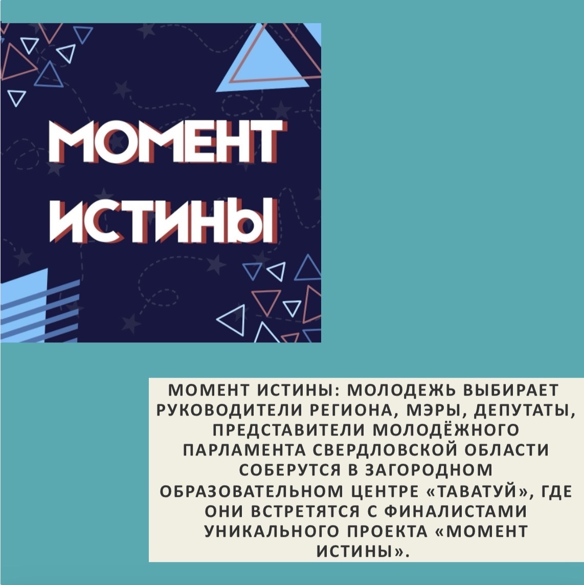С 10 по 13 декабря 250 финалистов образовательного проекта «Момент истины» из 3000 участников соберутся в загородном центре «Таватуй» на интенсив, где встретятся с руководителями области, депутатами и экспертами.