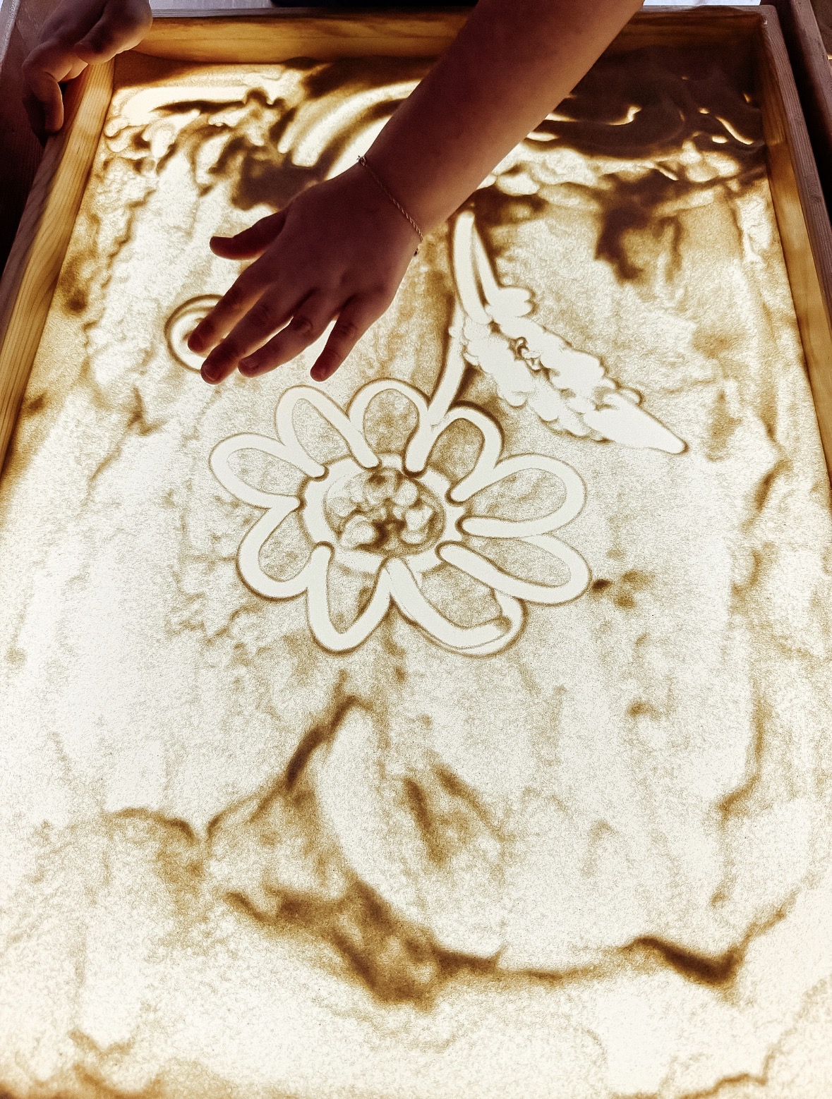 В уютном зале библиотеки им. В.П. Крапивина юные гости вместе с психологом Александрой Заболовской отправились в путешествие к своим мечтам. Работая с песком и создавая общий рисунок, дети учились понимать себя и других, строить безопасный мир и говорить о важном. В их образах — одуванчик, растущий вместе с папой, трава, которой «поможет ветер», и Страна Мечты, где есть кристалл силы, дающий «смелость» и «крылья бабочки».