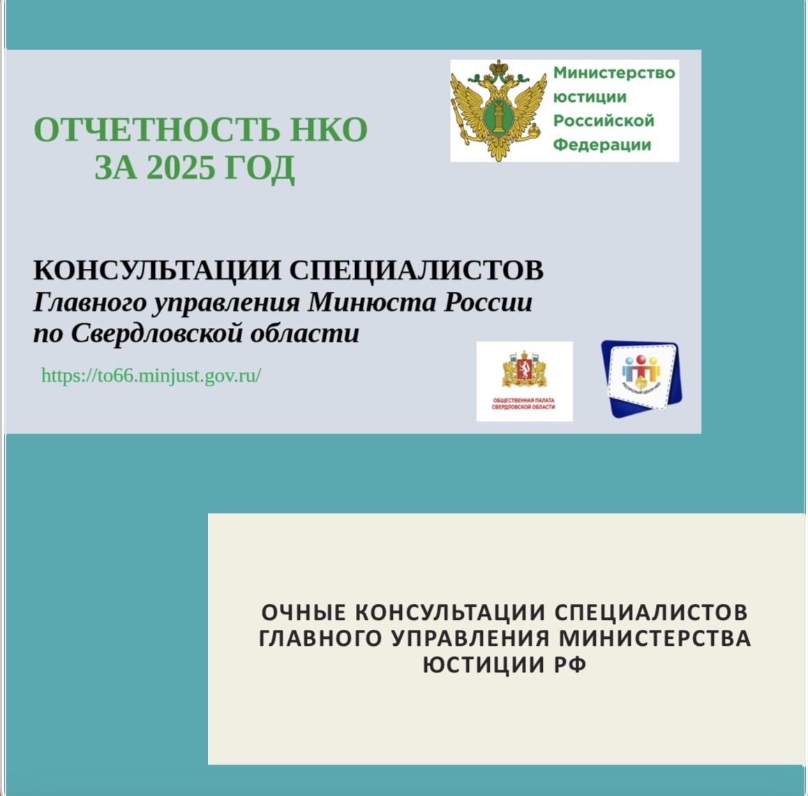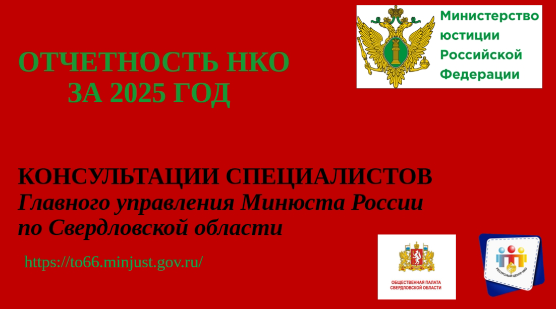 Консультации проводятся специалистами отдела некоммерческих организаций Главного управления министерства юстиции Российской Федерации по Свердловской области и экспертами Регионального ресурсного центра РСМ для СО НКО при поддержке и на площадке ОБЩЕСТВЕННОЙ ПАЛАТЫ СВЕРДЛОВСКОЙ ОБЛАСТИ.