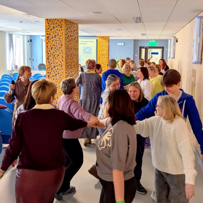 Отдельной частью семинара стала хороводная практика. Это простое, но мощное упражнение: когда люди двигаются вместе, появляется ощущение общей энергии и поддержки — то, чего часто не хватает выгоревшим коллективам.