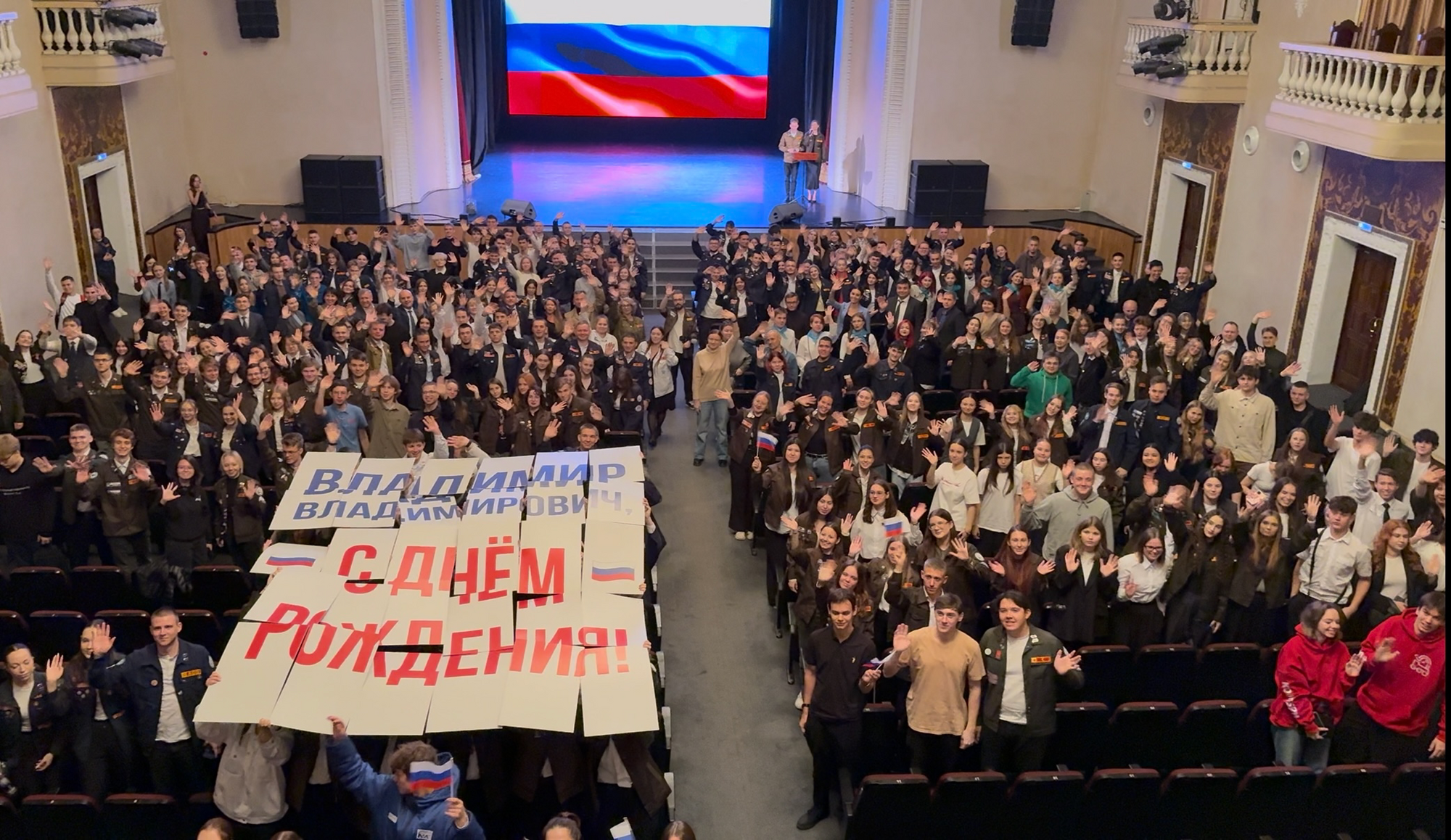 В завершение мероприятия участники студенческих отрядов и регионального отделения «Молодой гвардии Единой России» провели флешмоб, посвящённый дню рождения Президента Российской Федерации Владимира Путина — собрали большой паззл с поздравительной надписью