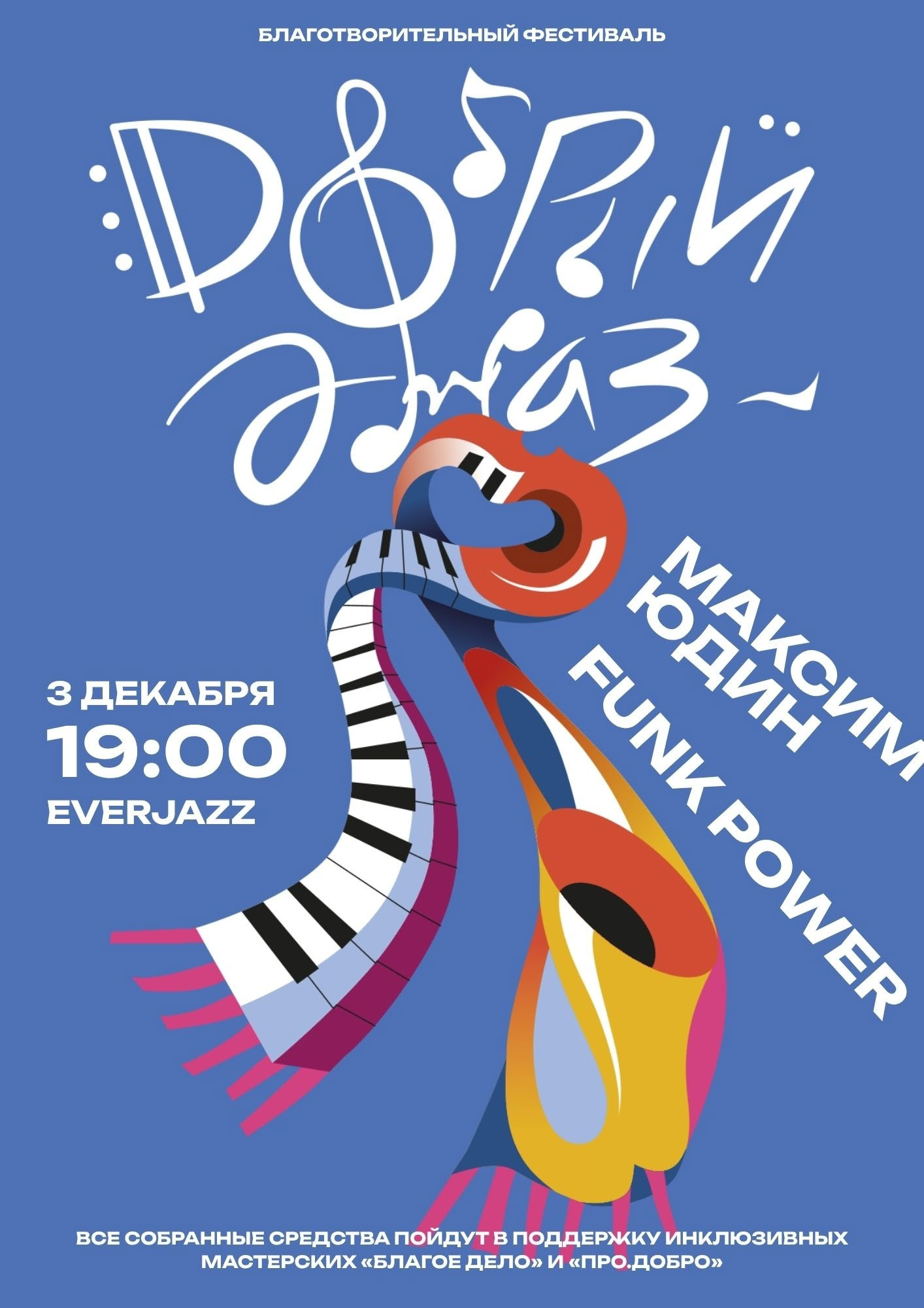 Насладиться джазом и сделать доброе дело можно за один раз. Как? Приходите на третий ежегодный благотворительный фестиваль «Добрый джаз»! Он приурочен ко всемирному дню благотворительности и акции #Щедрыйвторник. Все вырученные средства пойдут на развитие Волонтёрского движения «Про.Добро» и наших друзей «Благое дело»