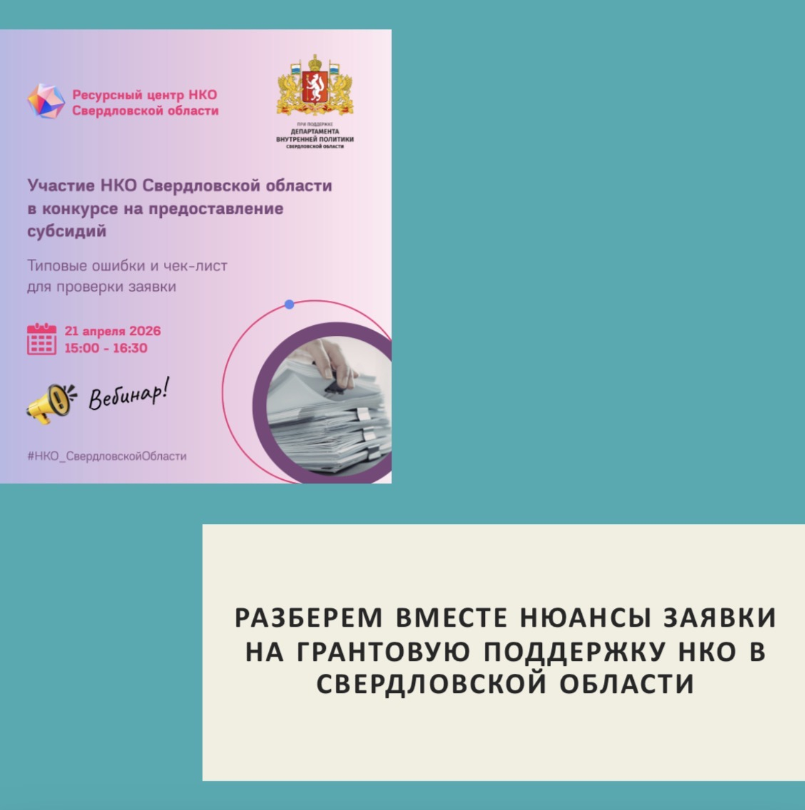 Ресурсный центр поддержки НКО Свердловской области проводит вебинар про участие в конкурсе некоммерческих неправительственных организаций на право получения субсидии за счет средств областного бюджета и гранта Президента Российской Федерации.