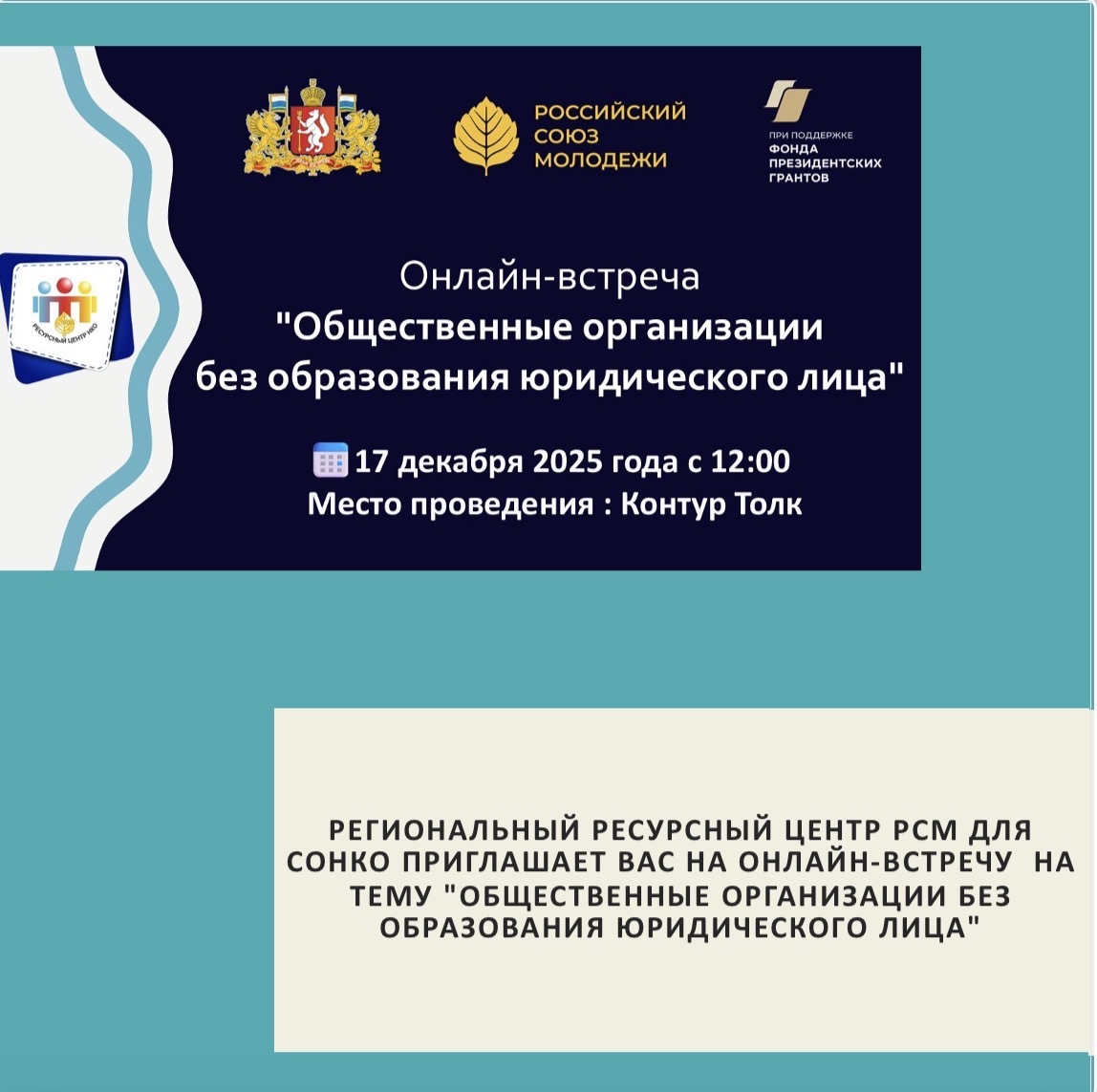 Региональный Ресурсный Центр РСМ для СОНКО приглашает вас на онлайн-встречу на тему "Общественные организации без образования юридического лица"