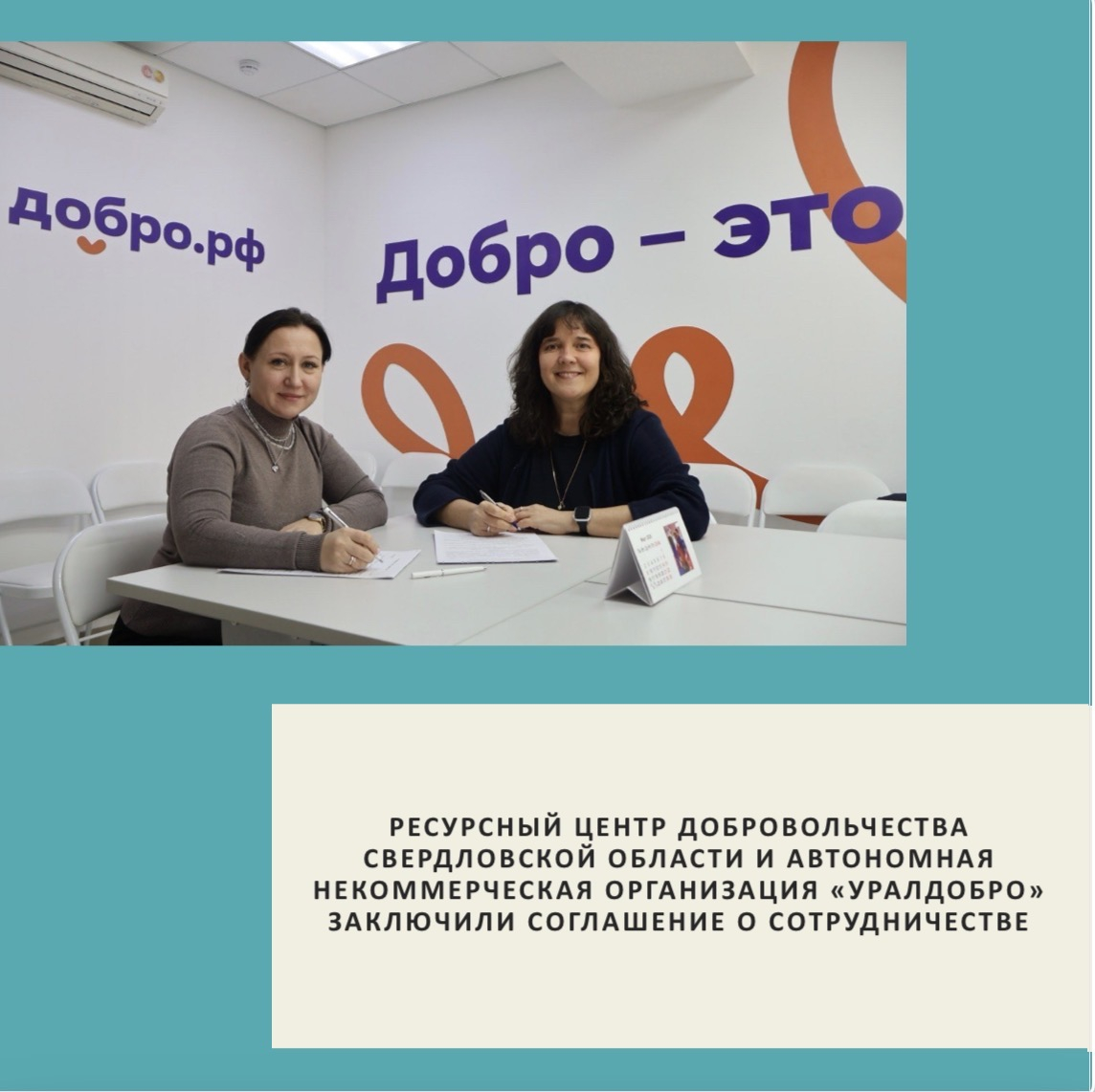 Ресурсный центр добровольчества Свердловской области и Автономная некоммерческая организация «УралДобро» заключили соглашение о сотрудничестве. Документ подписали руководитель Ресурсного центра Елена Козырева и директор «УралДобро» Яна Смирнова.