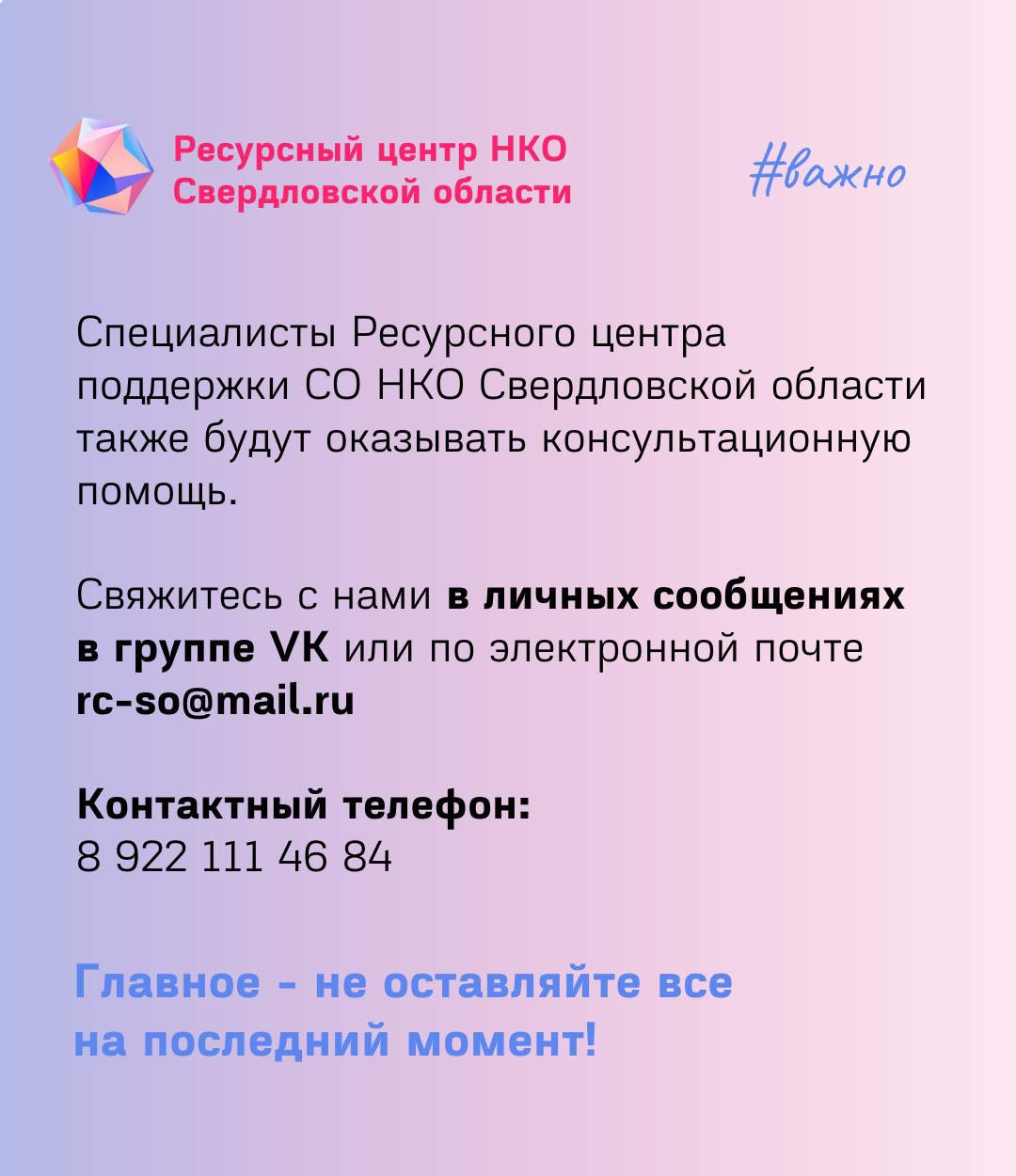 Консультационная помощь по сдаче отчетности: свяжитесь с нами в личных сообщениях в группе VK или по электронной почте rc-so@mail.ru