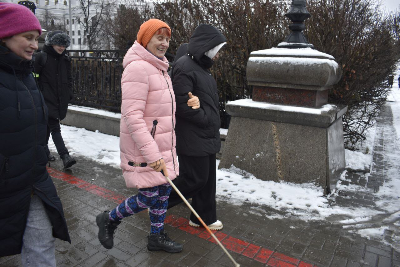В группе были люди с инвалидностью: на коляске, незрячие и слабовидящие, а также с ограничениями по здоровью. Поэтому маршрут был выбран с точки зрения их мобильности, хотя время от времени погоду портили разбитые тротуары и поребрики (мы, конечно, справлялись с ними благодаря волонтерам, к ним еще вернемся позже, но если бы с нами была электроколяска, пришлось бы в паре мест искать дополнительные пути обхода).