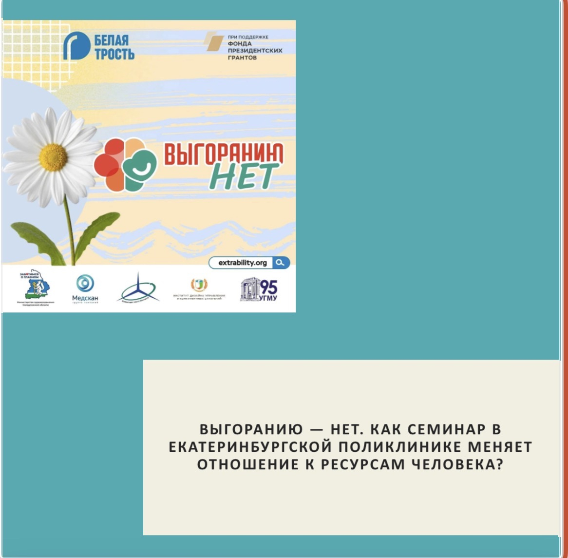 Более 40 сотрудников поликлиники №23 (Екатеринбург) прошли семинар «Выгоранию нет». Лекция о природе выгорания, сторителлинг от людей с инвалидностью (показывающий скрытые ресурсы), практические задания. Например, пластилинография с закрытыми глазами: участники лепили образы уставших, но преодолевающих врачей. Затем хороводная практика для снятия напряжения и рефлексия для осознания своего состояния.