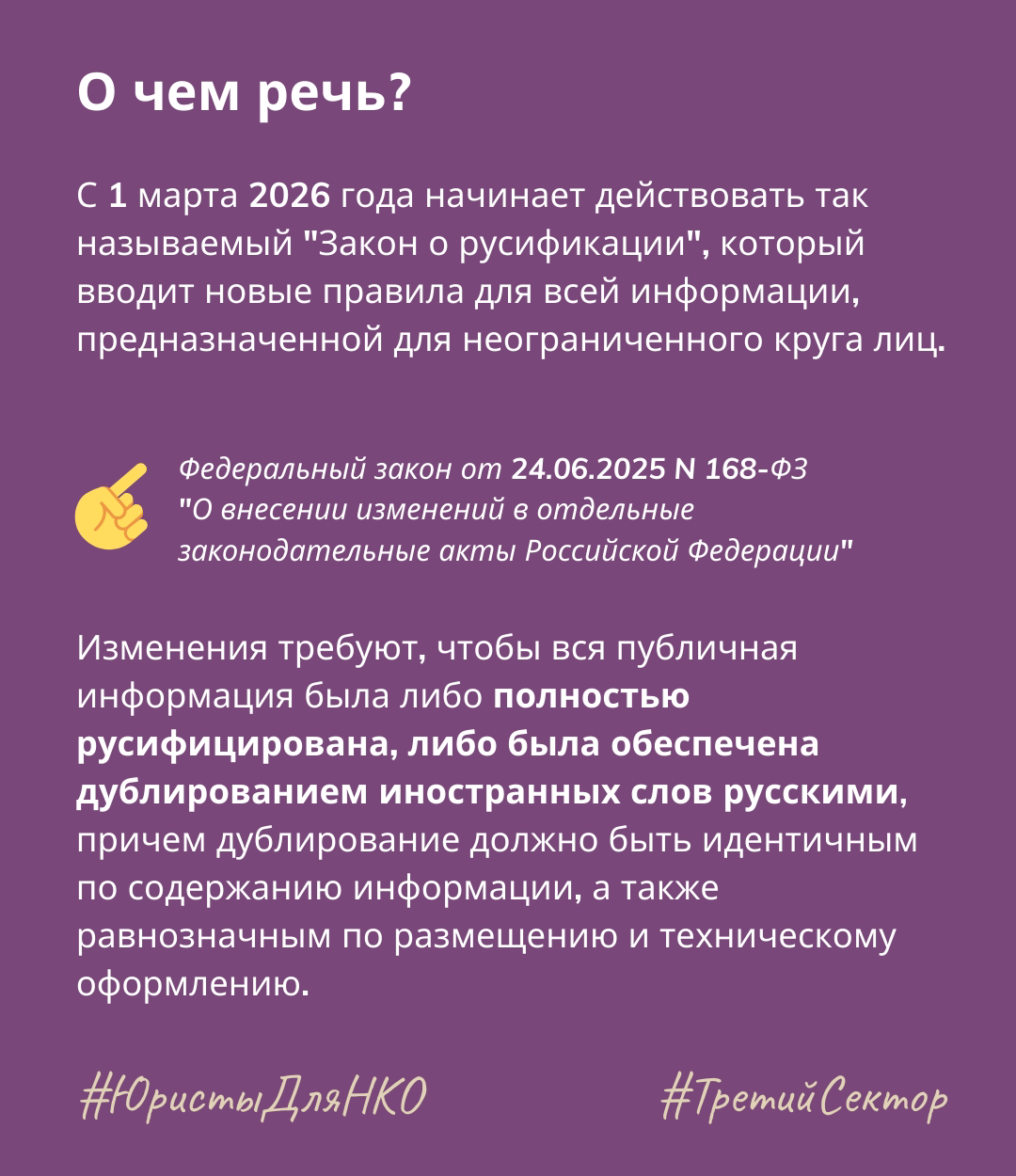 Закон о русификации с 1 марта 2026 года: что надо учитывать в работе НКО?