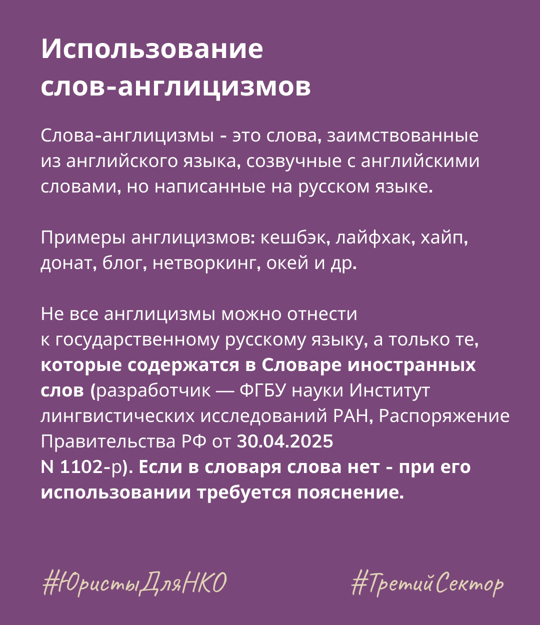 На что обратить внимание некоммерческим организациям? Юристы для НКО из Ресурсного центра "Третий сектор" проанализировали новый закон и собрали главное в карточках.