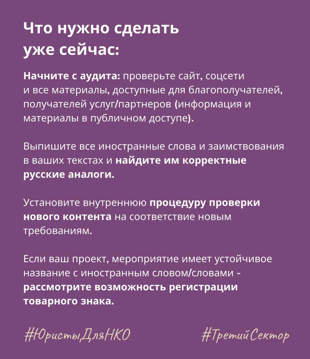 Изменения законодательства требуют аудита сайтов, социальных сетей НКО, в том числе в части наименований программ, проектов, акций и мероприятий.